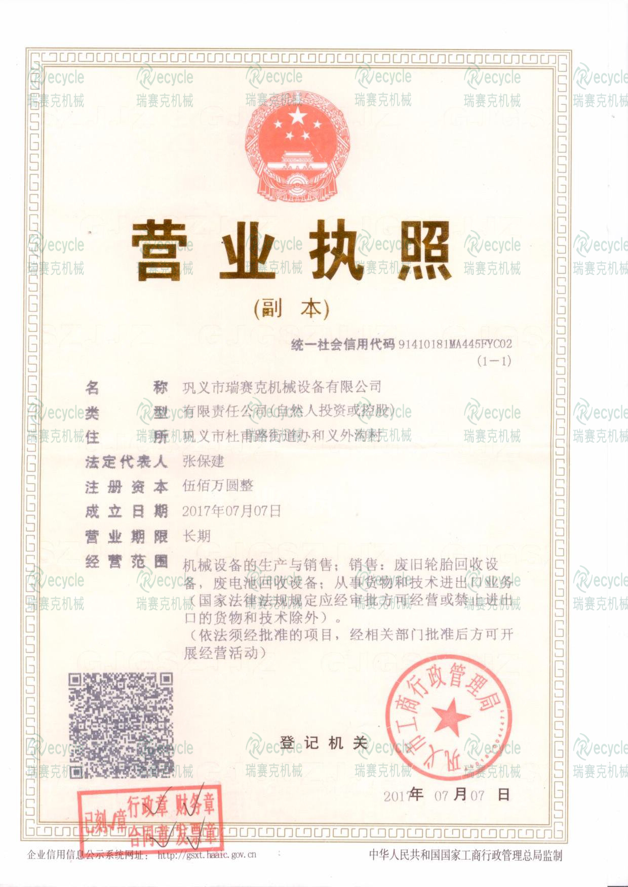 巩义市瑞赛克机械设备有限公司   总部地址:河南省郑州市上街区科学大道1123号   豫ICP备17040395号   营业执照  荣誉资质